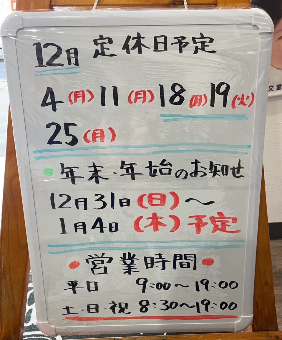 12月の定休日を下記の通りお知らせいたします。
