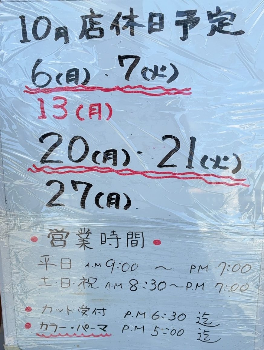 10月の定休日を下記の通りお知らせいたします。