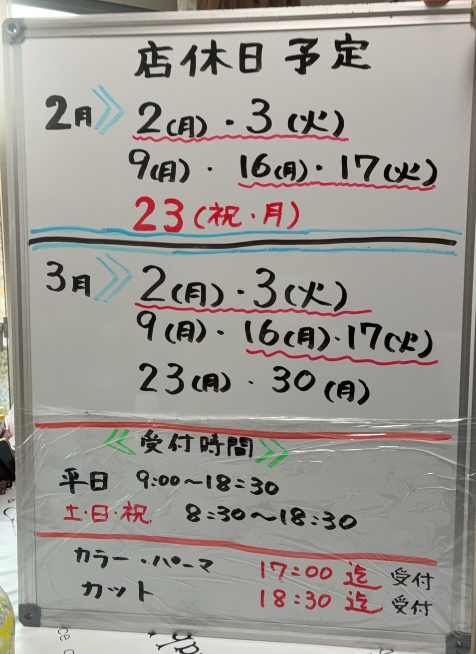 2月・3月の定休日を下記の通りお知らせいたします。